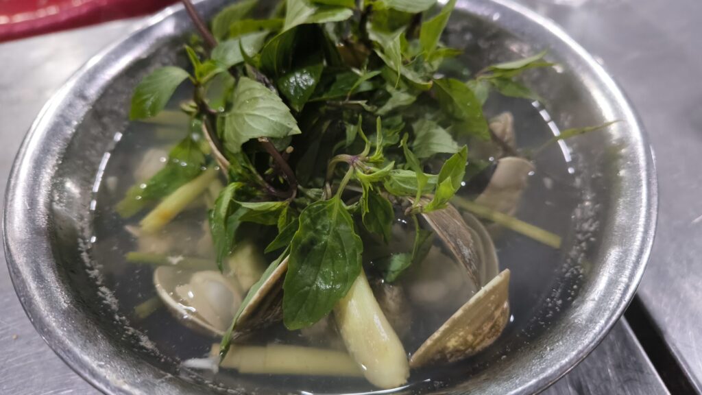 ↑別な日の、アサリじゃない違う貝の蒸し物。実際にスープ全部飲み干した。笑