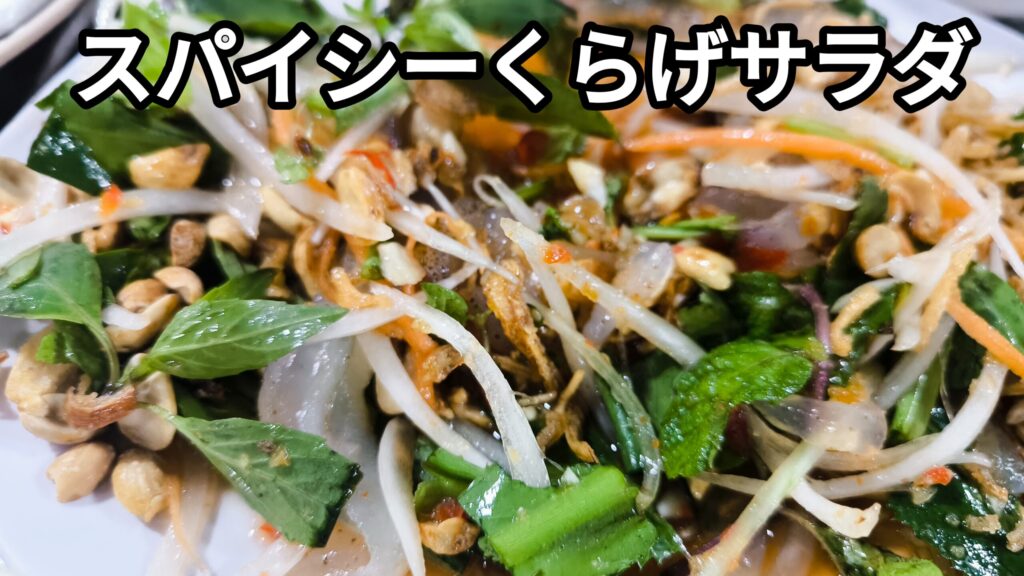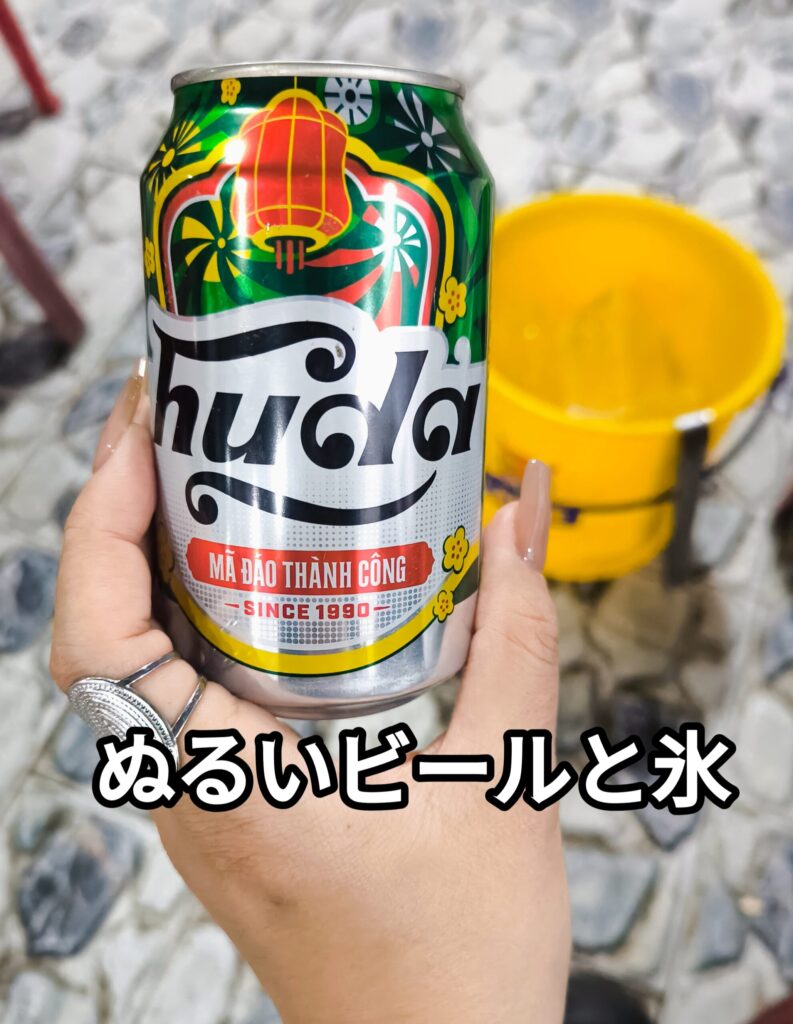 これだけ頼んで、料理7品ぐらい+ビール1杯で合計55万ドン。日本円にすると約3,300円くらい。……安すぎない???(もちろん酒飲みのみなさんはもっとビール代がかかるとは思うんだけど…笑)