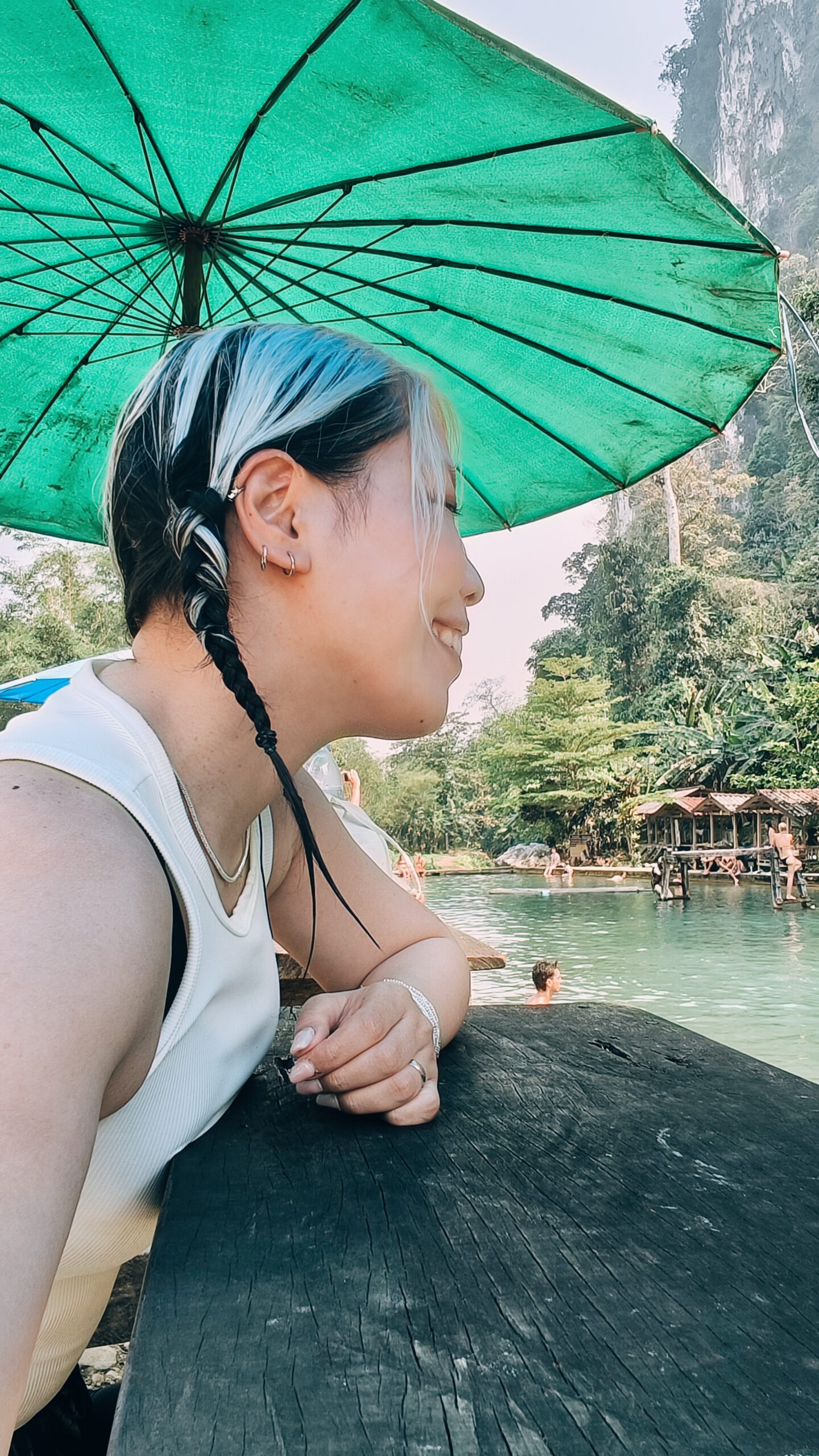 そのあとはブルーラグーン3へ移動。入場料は2人分で60,000キープ(約440円)。ここ、思ってた以上に水が綺麗でびっくり。深さも3〜4mくらいあって、魚が見えるレベルの透明度。欧米バックパッカーが集まる理由がよく分かる場所です。普通に泳ぐだけじゃなくて、飛び込みやロープスイングもあって、完全に大人の遊び場〜〜〜!バックパッカーの聖地ってかんじ。