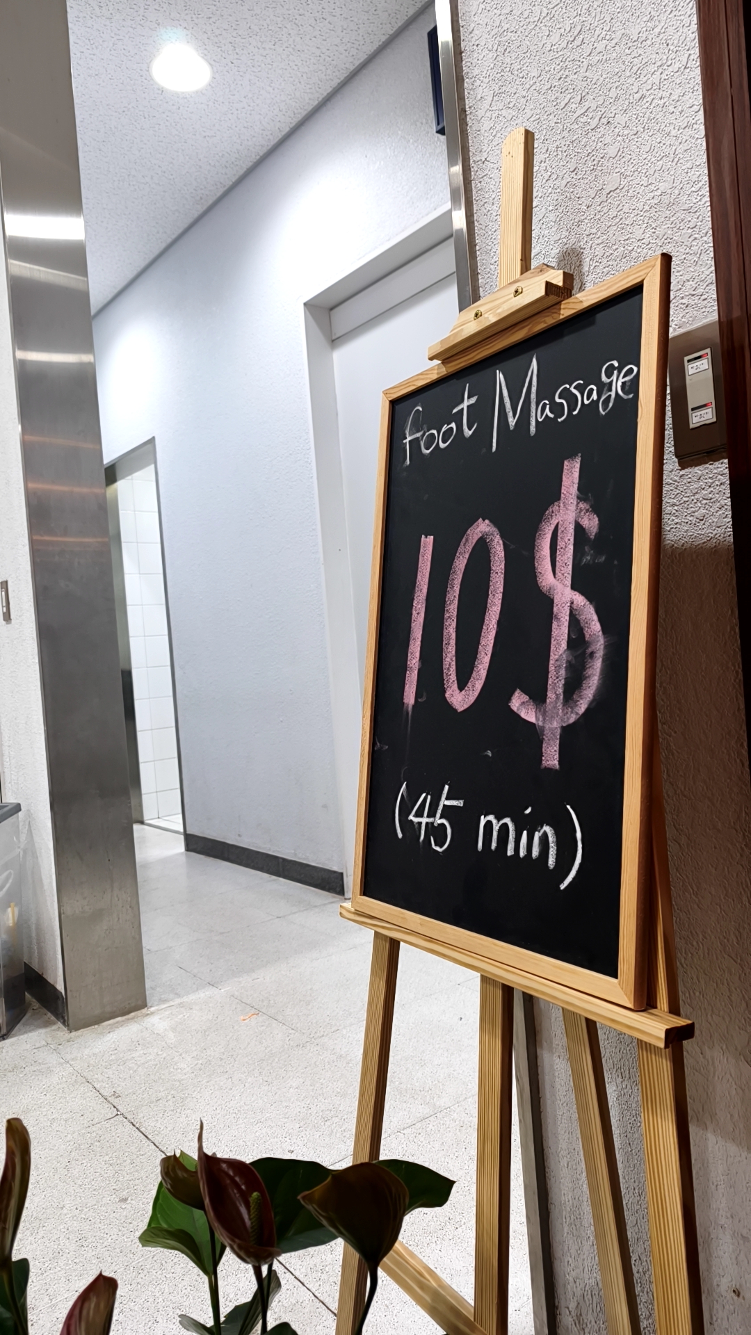 さてさて、どう時間を潰そうかと少し困っていたところで見つけたのが、空港内のマッサージショップ。これがかなり当たりでした。正直、前回来たときはこんなのなかった気がするので、比較的新しめのお店かもしれない。空港内だから高いかなと思いきや、メニューを見るとフットマッサージ45分で10ドル(フットマッサージしかない)。為替にもよるけど日本円で1500円前後と考えると、空港価格としてはかなり良心的。